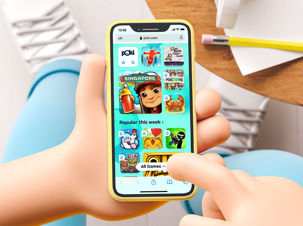 Amsterdam based (HTML5) gaming platform Poki approached me to do an assignment. Research showed that their users had a hard time finding the games they were searching for, especially when visiting Poki's mobile website.