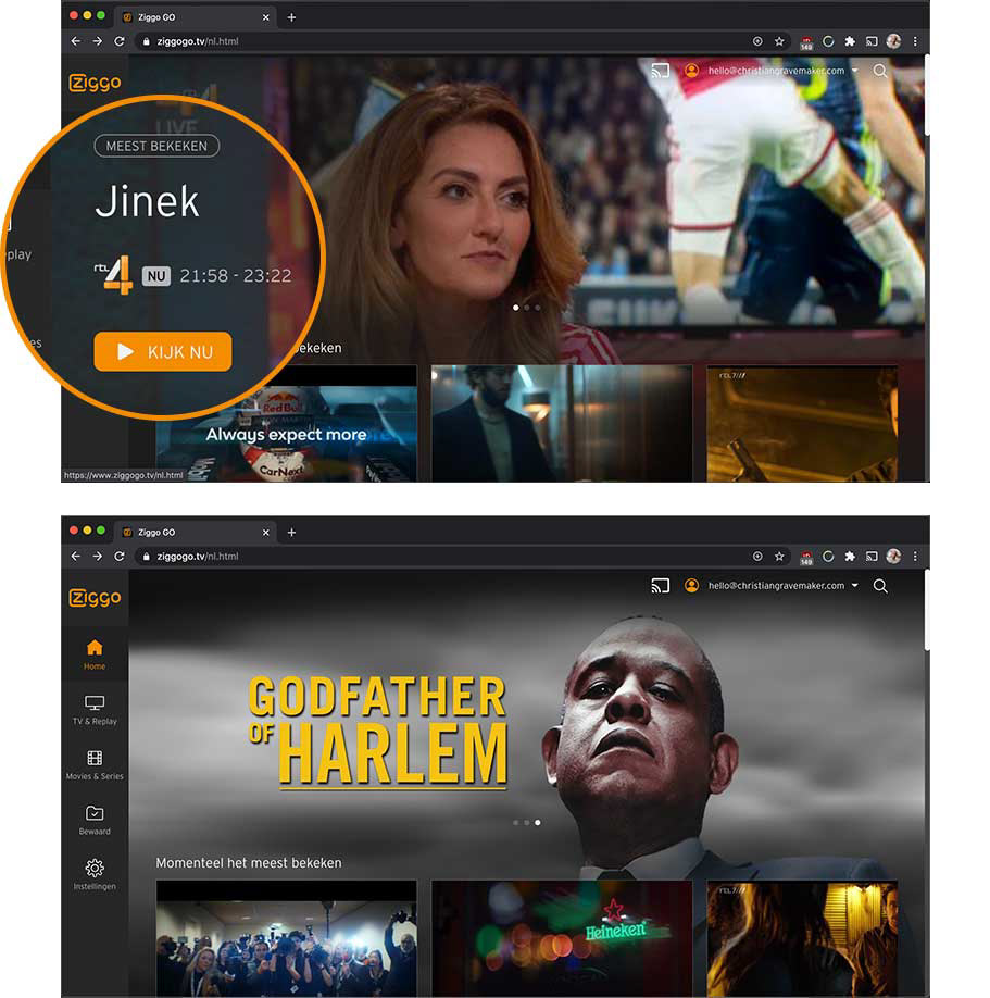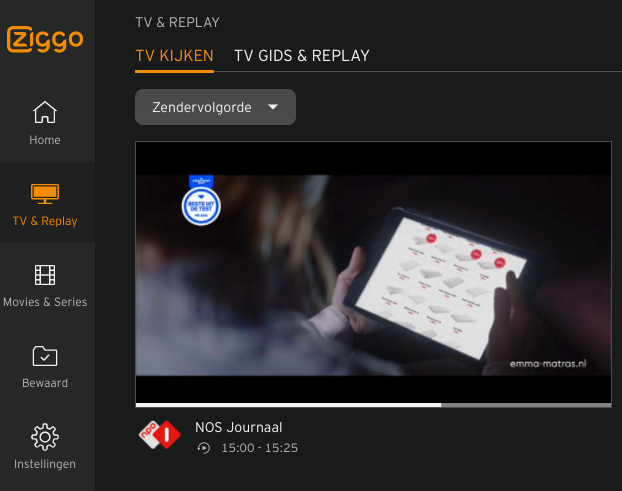 PIC: Screenshot current 'TV & Replay' section on Ziggo Go